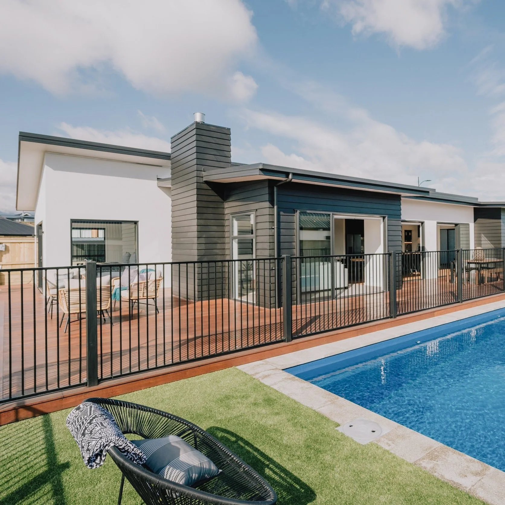 The section was elongated and narrow, offering a north-facing view. The clients had a vision of creating an inviting, entertainment-focused space with a pool, which naturally influenced the layout. They were enamored with the concept of a spacious, open-plan room that offered convenient access to the children's bedrooms and bathrooms. The master bedroom and lounge area boast stunning vistas of the majestic mountains, while the kitchen and dining areas center around the enchanting pool and meticulously landscaped surroundings.