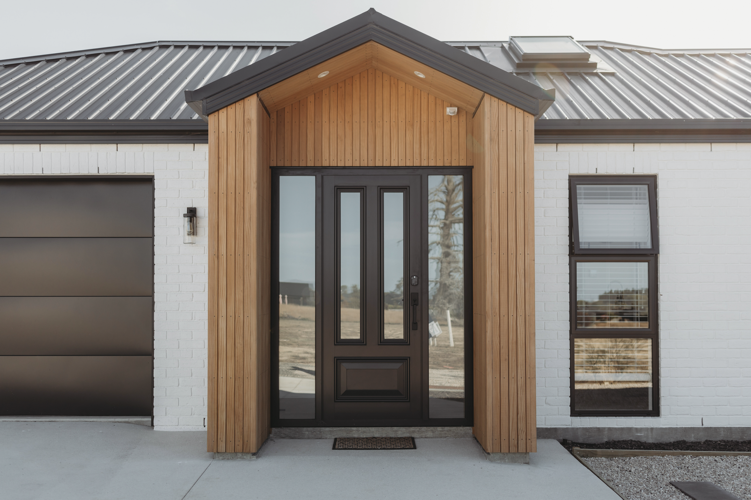 The exterior of the build reflects our vision of merging classic aesthetics with a contemporary twist. We opted for a rustic textured painted white brick exterior, harmoniously paired with Genia timber. This combination not only pays homage to the charm of English architecture but also infuses the design with a distinctively modern Kiwi sensibility.